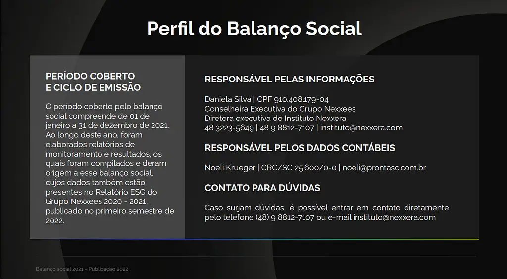 Para o futuro, nós do Grupo Nexxees acreditamos que a inovação e a sustentabilidade devem continuar caminhando juntas e que se faz cada vez mais necessário o fortalecimento de agendas internas relacionadas aos ODS – Objetivos do Desenvolvimento Sustentável e aos 10 princípios universais do Pacto Global nas áreas de direitos humanos, trabalho, meio ambiente e anticorrupção para construirmos um futuro inovador e sustentável em toda a nossa cadeia de valor.